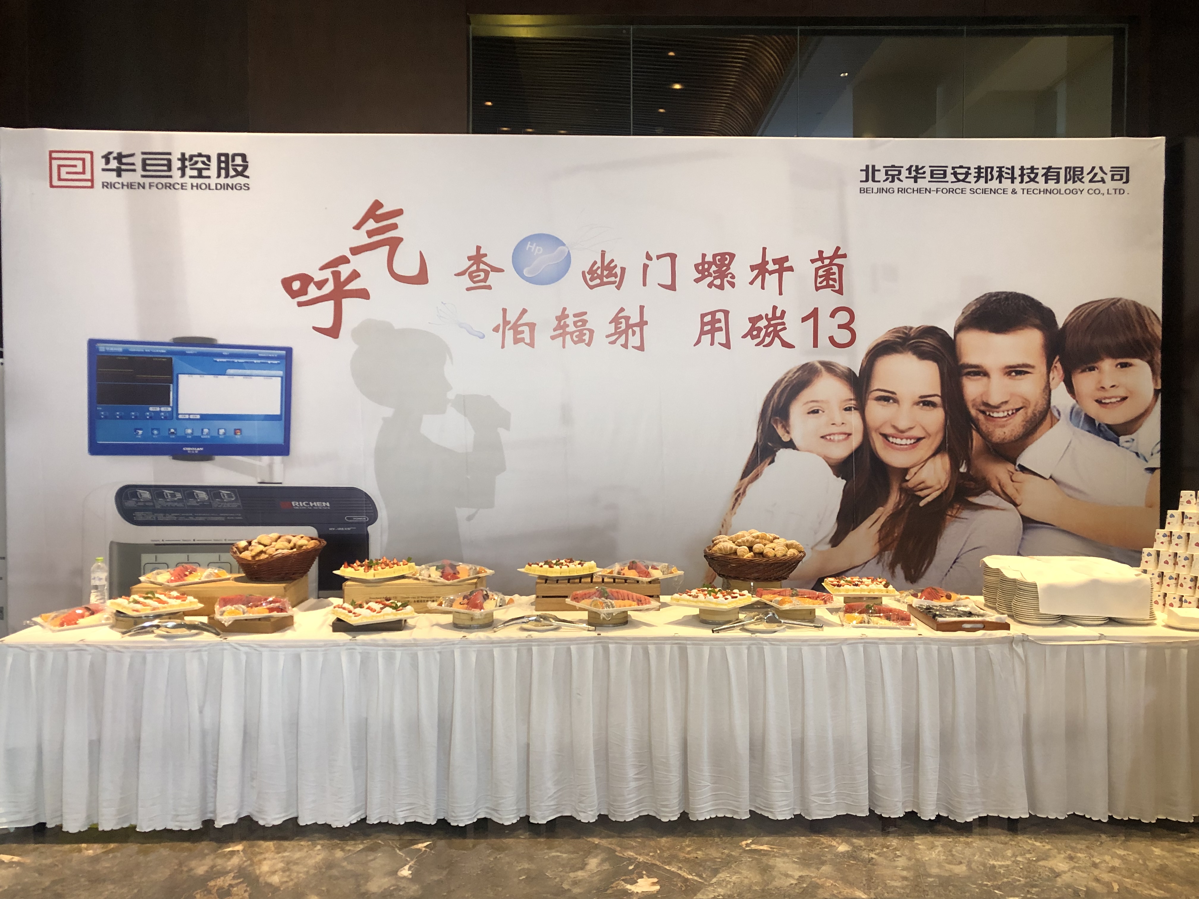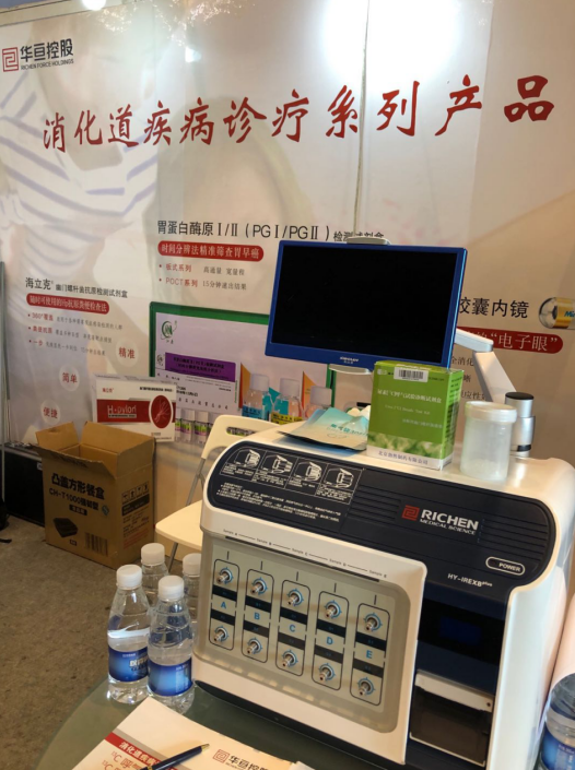 华亘是中国呼气试验的领航者,是致力于守护大家消化道的安全卫士,通过自身实践,助力体检事业的科学建设,华亘一直在路上。本次华亘展出的产品有碳13呼气试验系统,胶囊式内窥镜系统(全消化道筛查,尺寸最小,工作时间可达12小时),胃蛋白酶原检测系统(评估胃粘膜状态,及时发现早期胃癌)及海立克(粪便检测幽门螺杆菌)。其中碳13呼气试验系统的设备是最新型号HY-IREXBplus红外光谱仪,作为为数不多进行定期质控及校正以确保高精密度的设备,很好的呼应了本次质控会议。不仅颜值外表高大上,还是国家认证的高新技术产品,引得众多参会人员驻足,询问。无疑是本次质控会议最吸引眼球的展品之一。